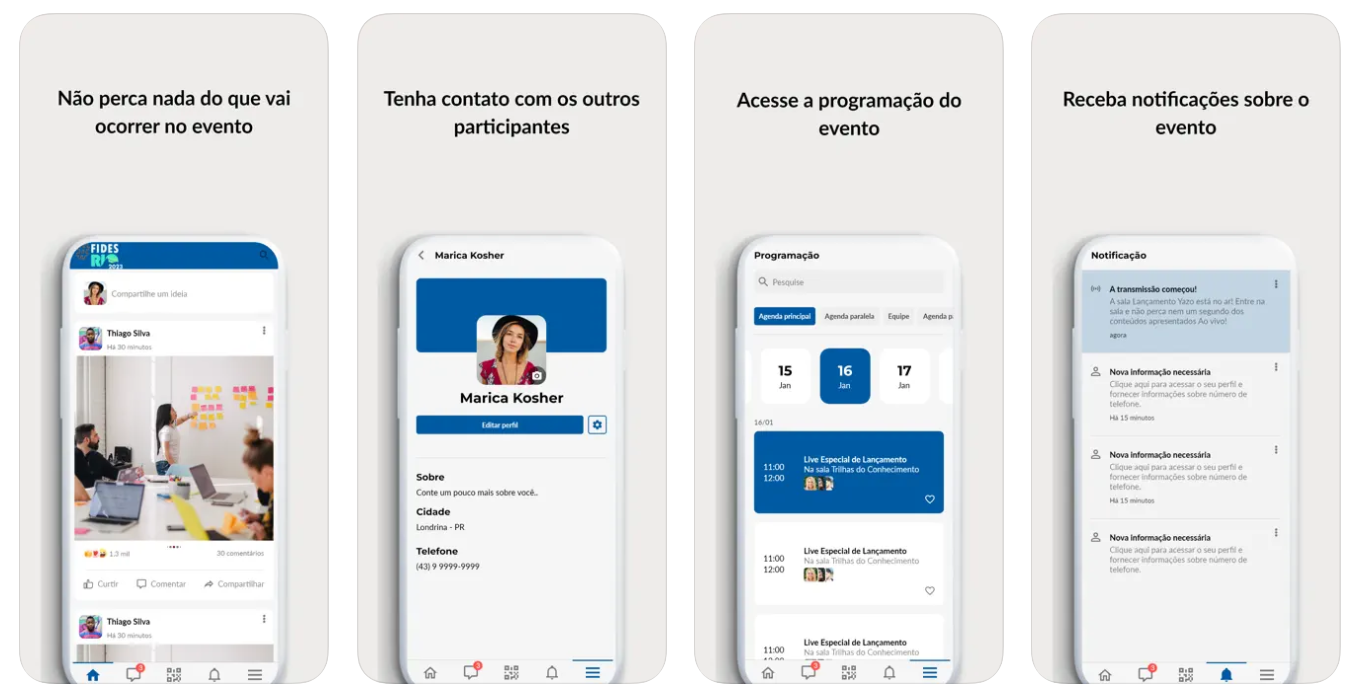 Além de compartilhar textos, fotos e vídeos na timeline, os usuários também poderão trocar mensagens de maneira privada. O app também conta com ícone exclusivo para reuniões com patrocinadores e outros usuários, mini bios sobre os palestrantes, além da programação completa e mapa da FIDES. Por lá, também será possível conferir as principais notícias do setor e do evento.