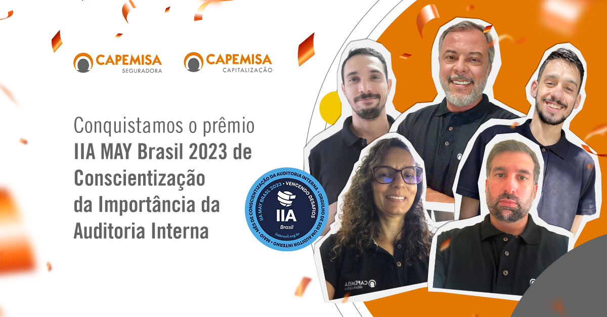 A CAPEMISA Seguradora e CAPEMISA Capitalização conquistaram o prêmio internacional IIA MAY Brasil 2023, campanha promovida pela IIA Brasil, em prol da Conscientização da Importância da Auditoria Interna. O destaque foi para os sistemas de controle interno e as linhas de defesa implementadas nos processos das empresas, que envolvem áreas de Auditoria Interna, Gestão de Riscos, Conformidade, Normas e Processos.