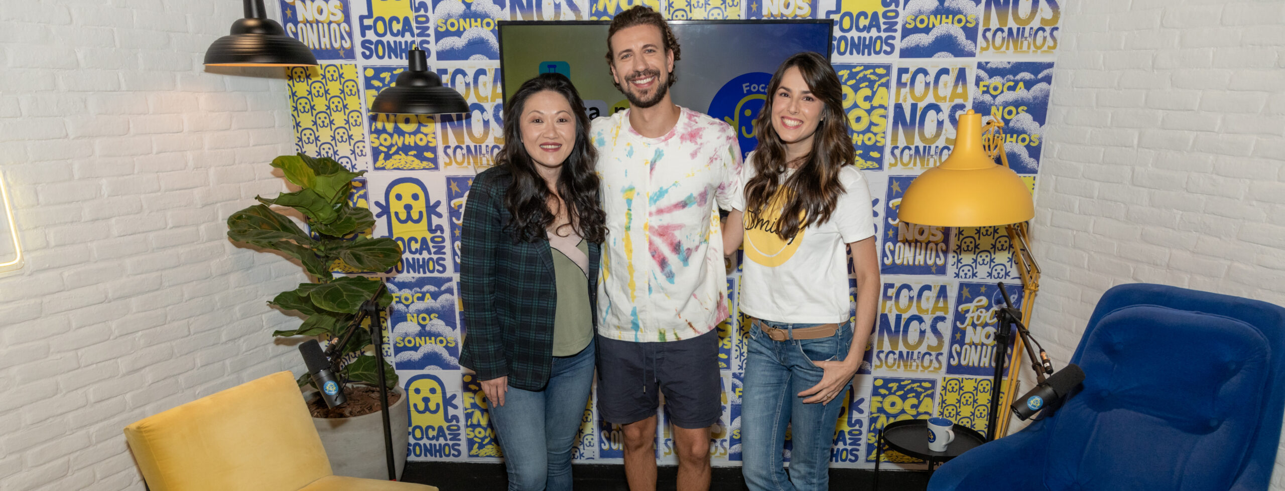 Foto: Cássia Yamada, da Brasilprev, Cesar Trifone, que participa do 1º episódio, e a apresentadora Beatriz Bauer