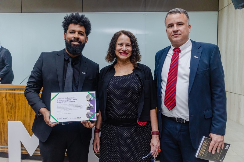 Foto: Victor Santos e Raphael Machado (Clavis) ao lado da ministra do Ministério de Ciência, Tecnologia e Inovação, Luciana Santos/ Crédito: MCTI