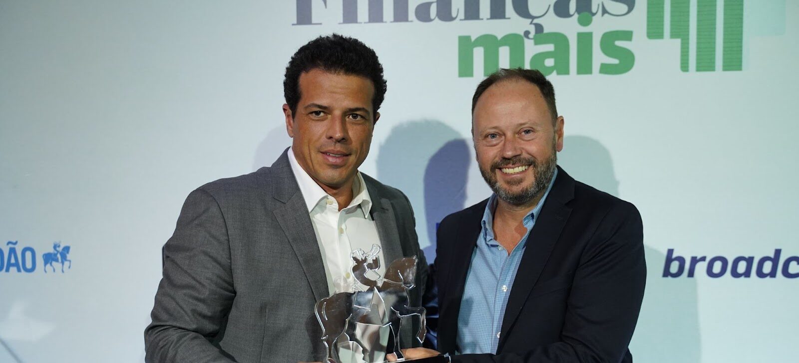 Foto: João Géo Neto (à esquerda), CEO da Pottencial Seguradora, recebe o prêmio.
