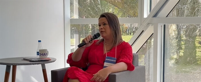 Foto: Glauce Carvalhal, Diretora Jurídica da CNseg em evento da Amcham/Prudential.