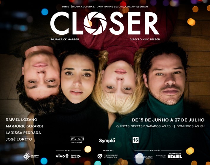 Reforçando o seu compromisso com a promoção da Cultura como ferramenta de transformação social, a Tokio Marine anuncia o patrocínio ao espetáculo teatral Closer, que estreia no Teatro Vivo, em São Paulo, no dia 15 de junho.