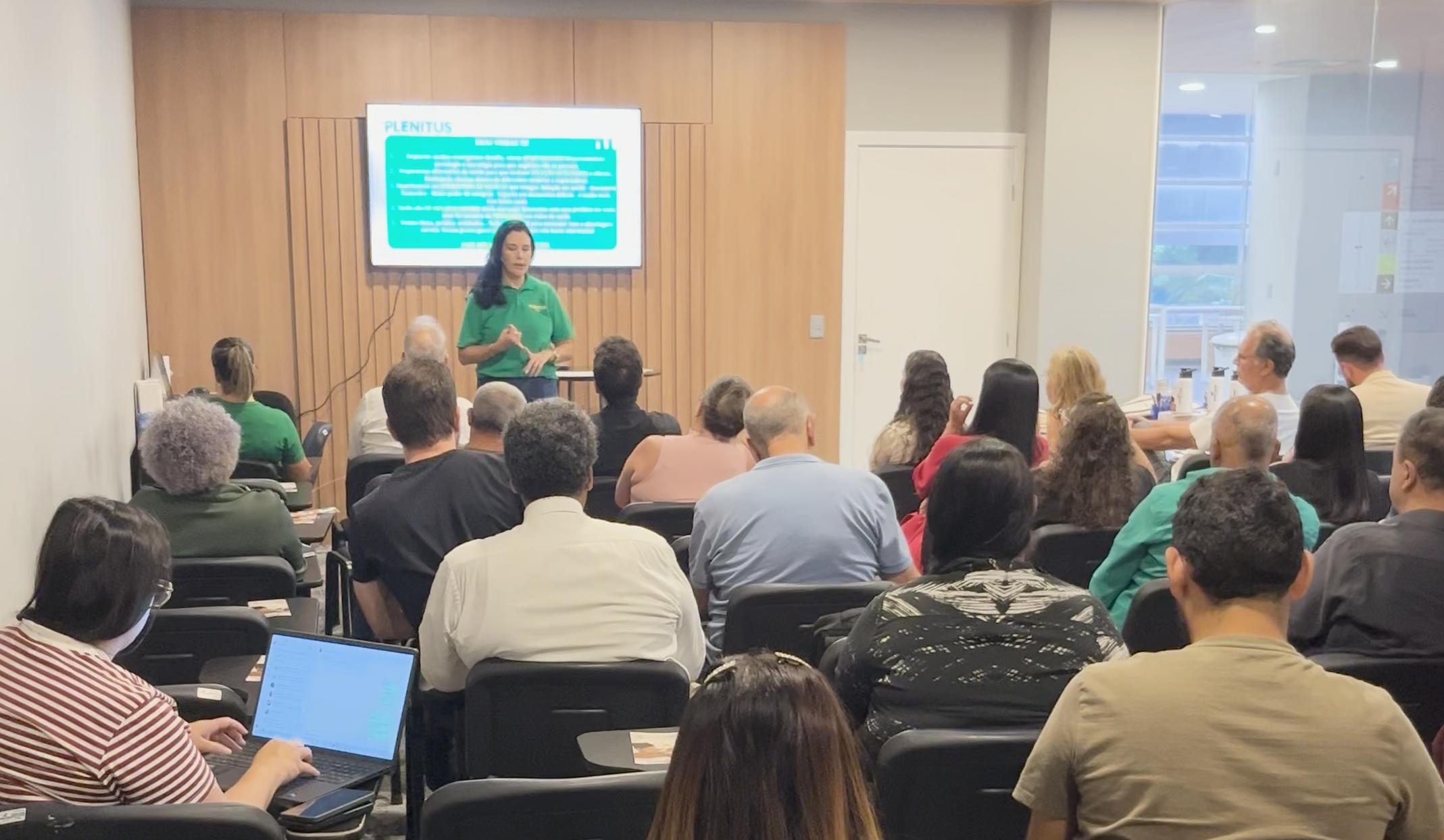 Foto: Danielle Rinco, coordenadora do Plenitus, durante evento de lançamento do novo produto para os corretores